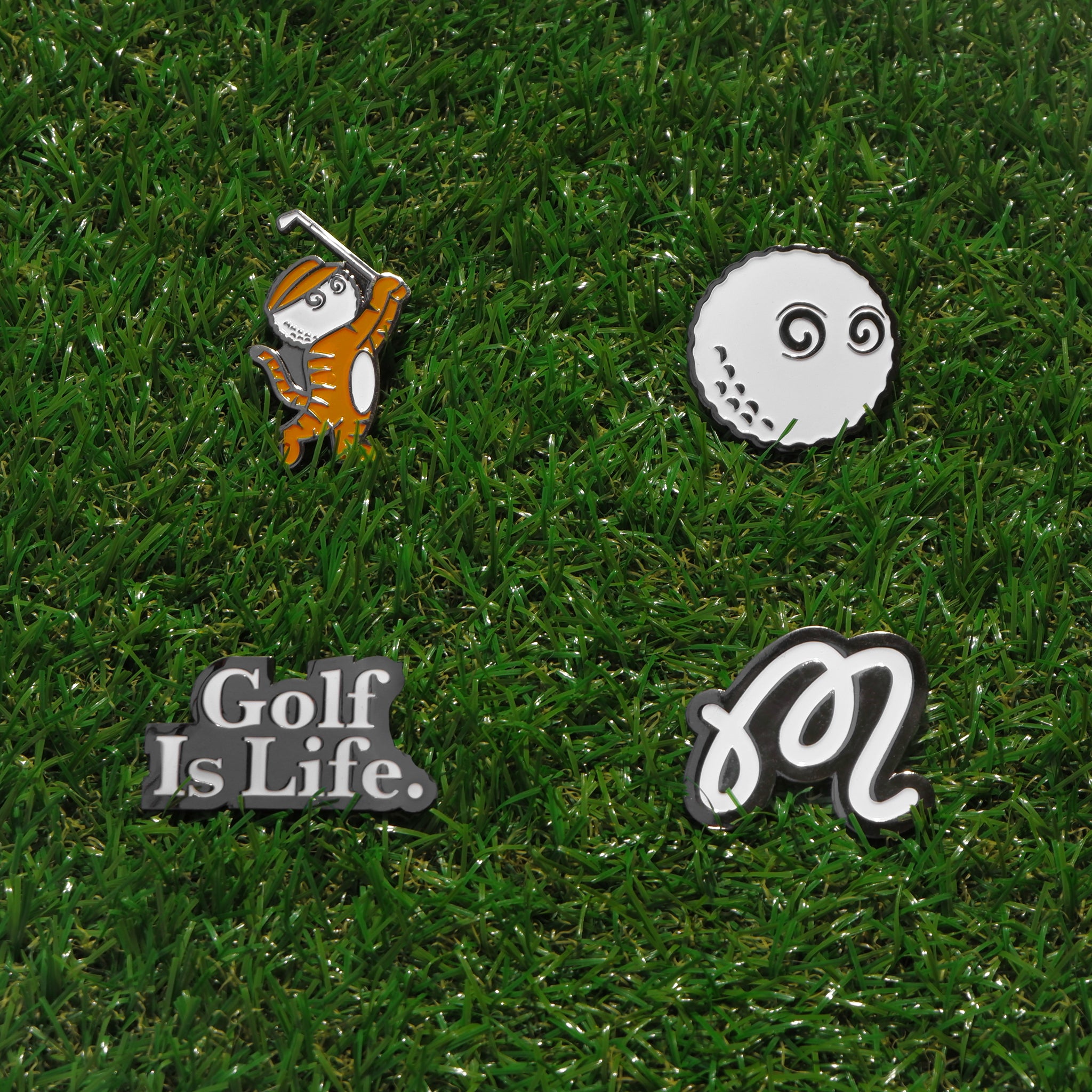 TIGER, BUCKETS, M SCRIPT, AND GOLF IS LIFE BALL MARKERS NOW AVAILABLE