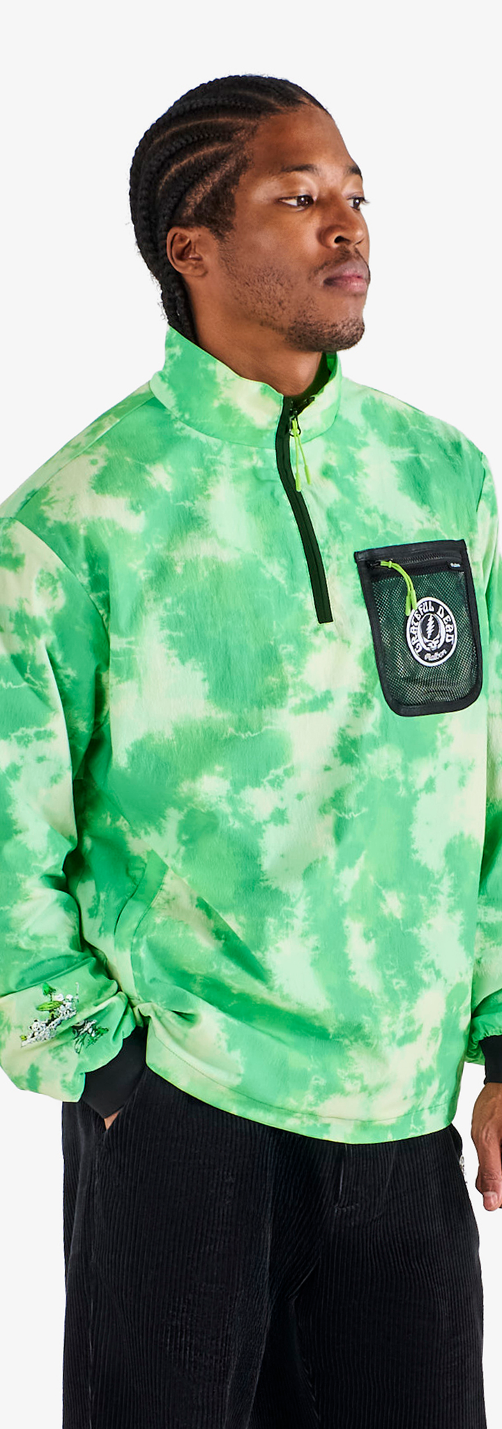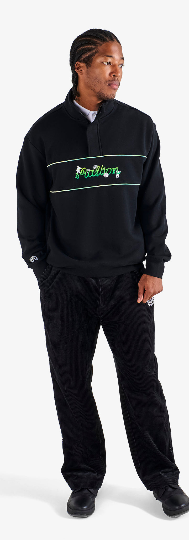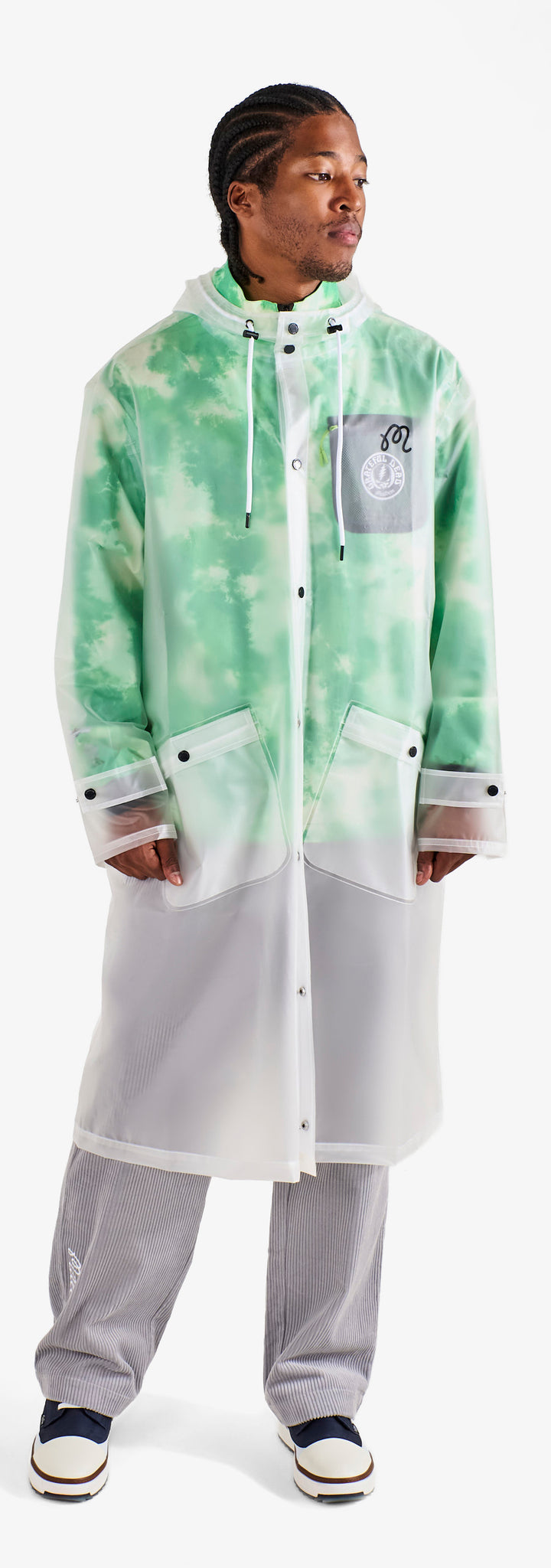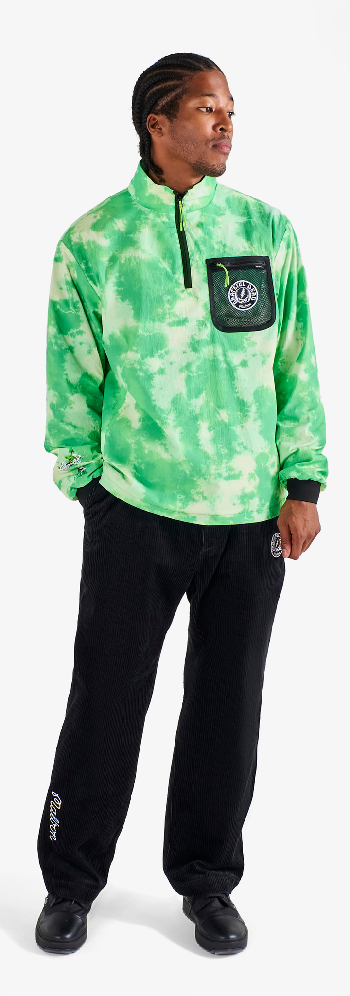This partnership honors creative expression and the rhythm connecting two communities. Co-branded embroidery and vibrant graphics define a celebratory range—from a transparent rain coat and classic corduroy pants to a variety of hats and cotton fleece loungewear.