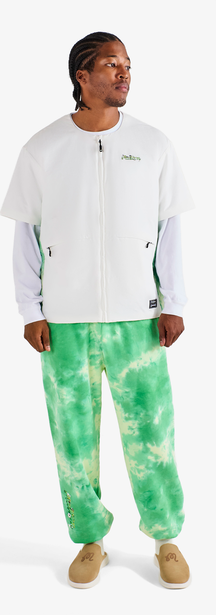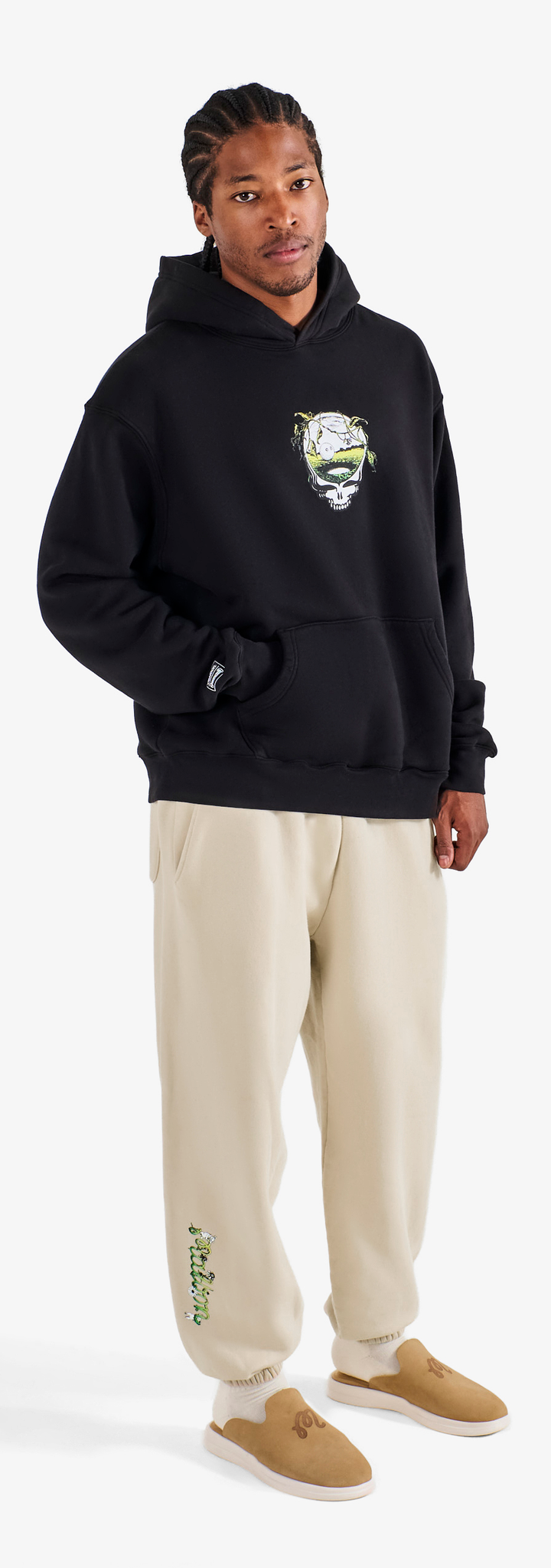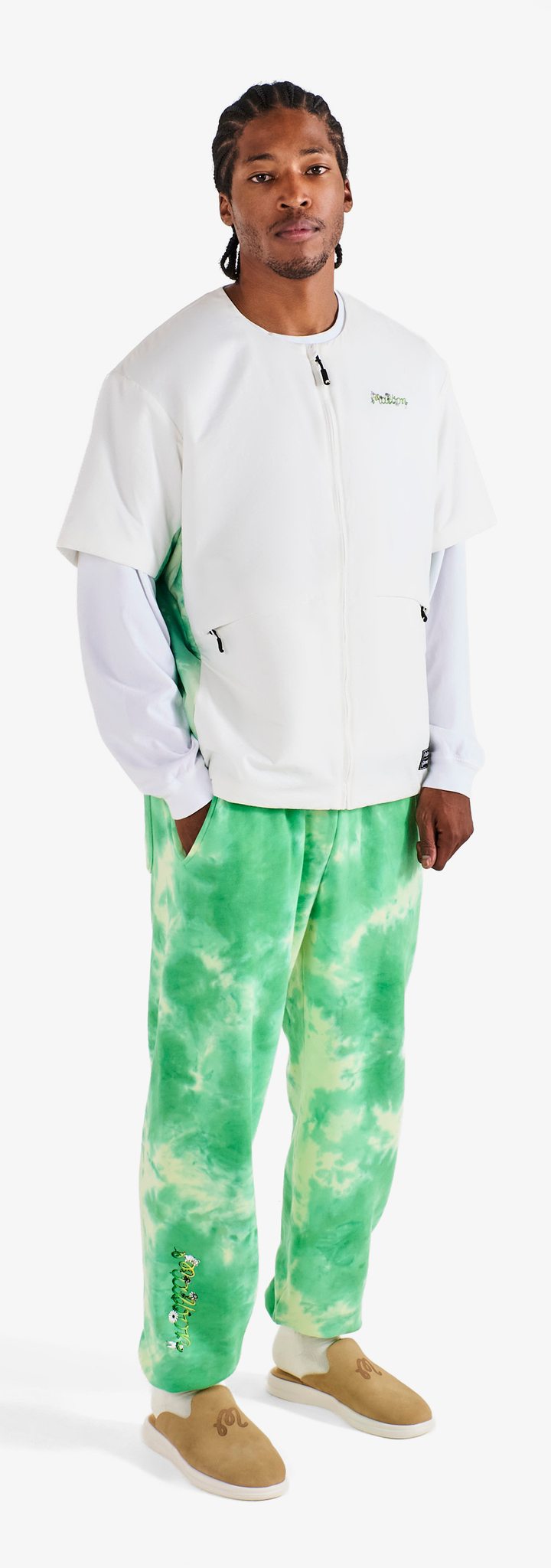 This partnership honors creative expression and the rhythm connecting two communities. Co-branded embroidery and vibrant graphics define a celebratory range—from a transparent rain coat and classic corduroy pants to a variety of hats and cotton fleece loungewear.