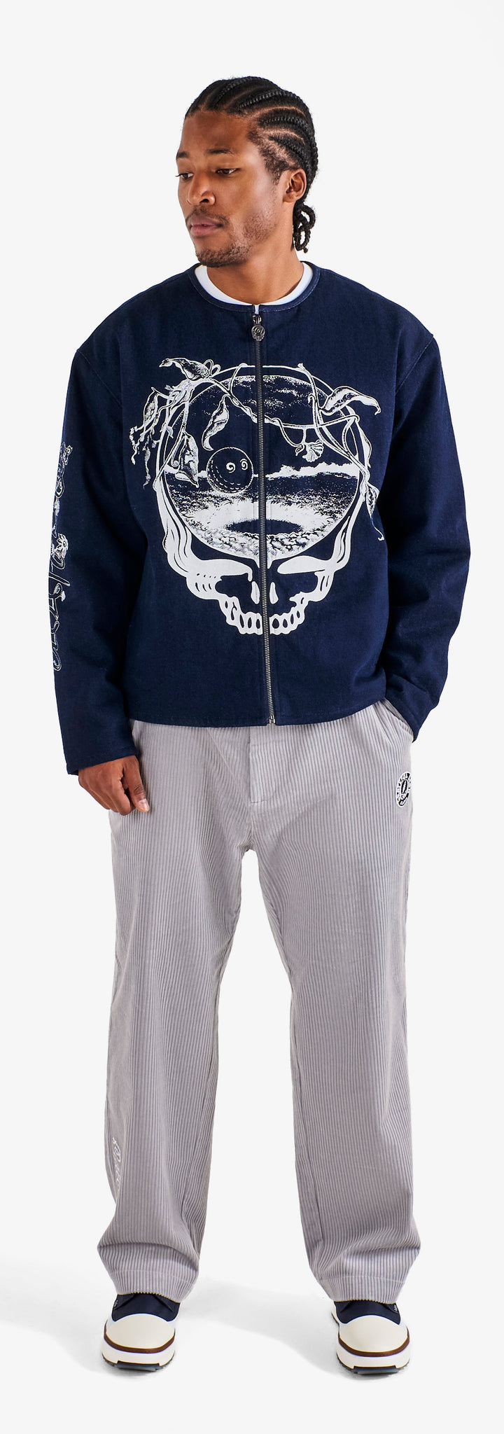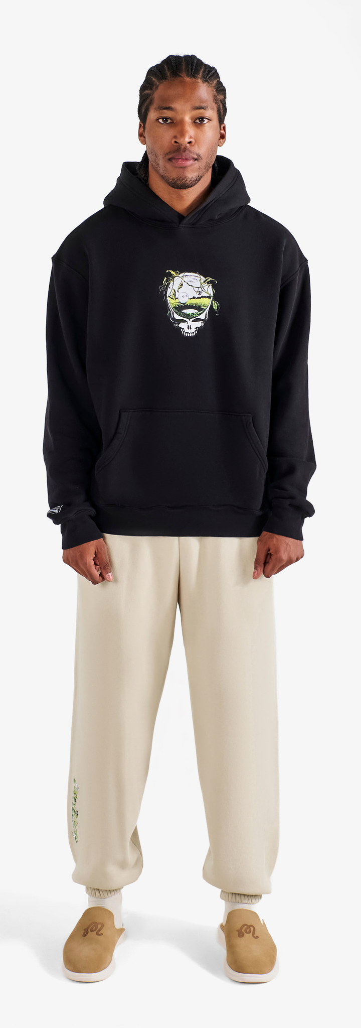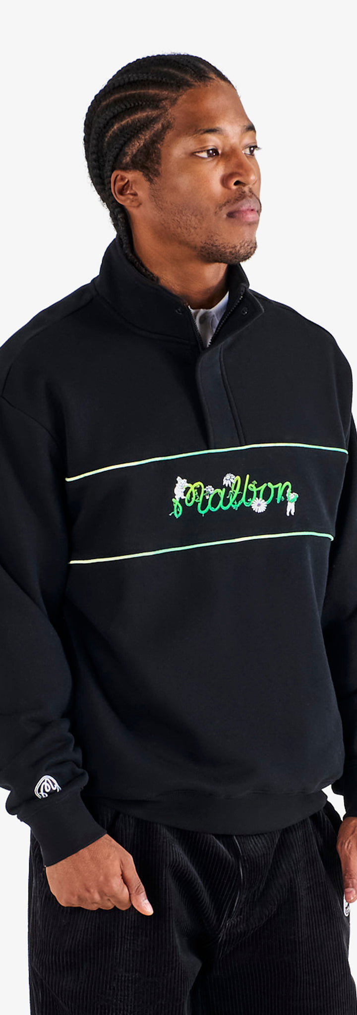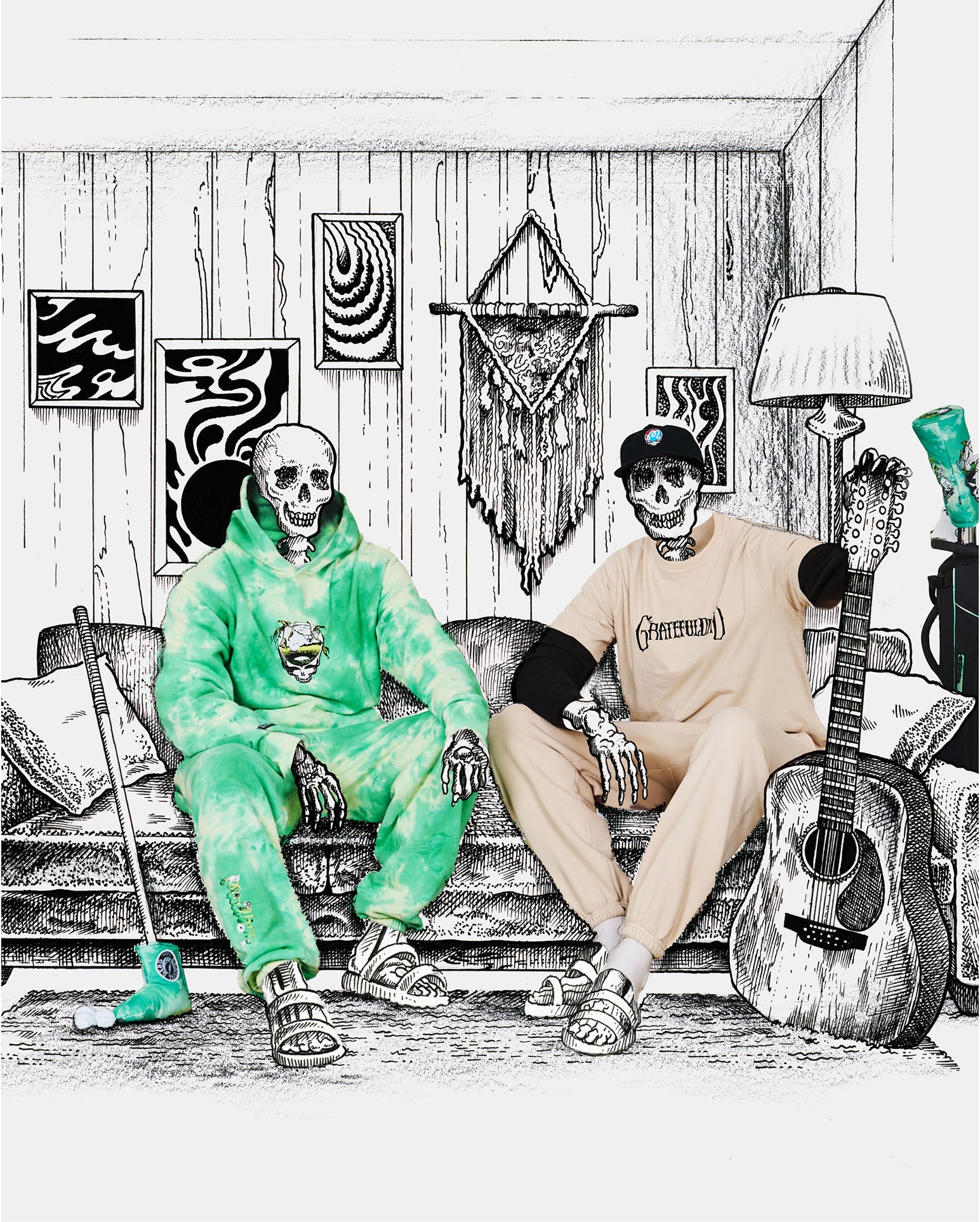This partnership honors creative expression and the rhythm connecting two communities. Co-branded embroidery and vibrant graphics define a celebratory range—from a transparent rain coat and classic corduroy pants to a variety of hats and cotton fleece loungewear.