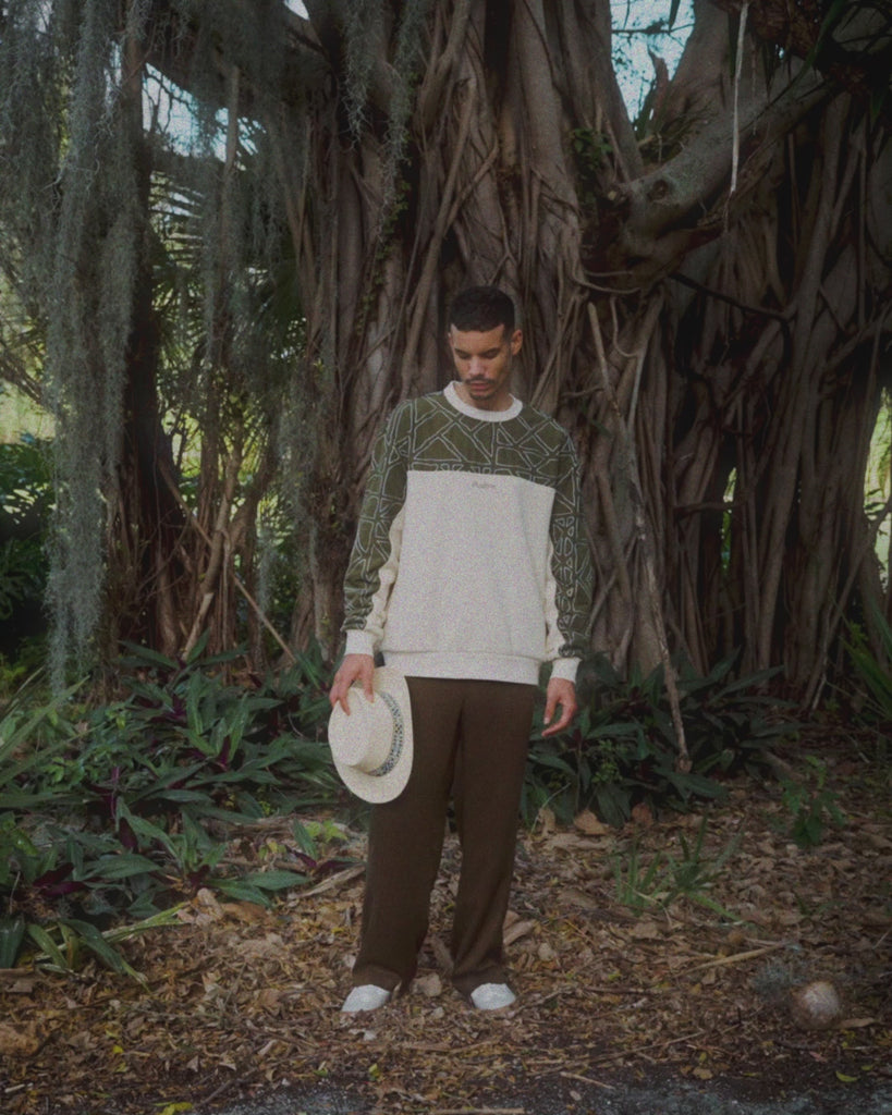 Inspired from Cuban architecture and landscape, Spring '26 embraces dynamism and contrast. Soft, sun-worn color meets purposeful construction, with mixed fabrications adding depth and tension throughout. Sugarcane stalks—rooted in the island’s landscape—emerge as a defining motif, expressed through prints and graphics that give the collection a clear visual identity and cultural throughline.