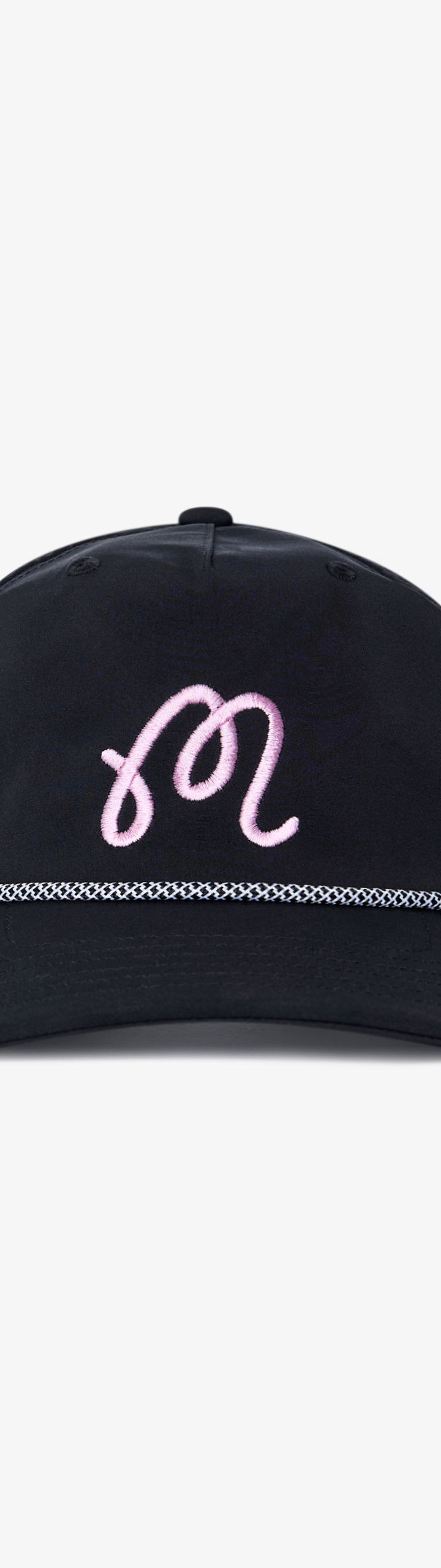 - Embroidered M script logo on front