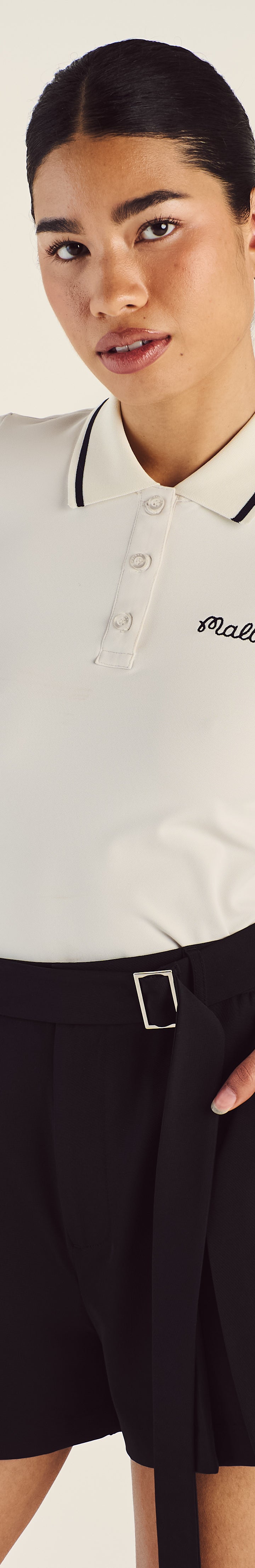 - Embroidered Malbon Script logo above back pocket