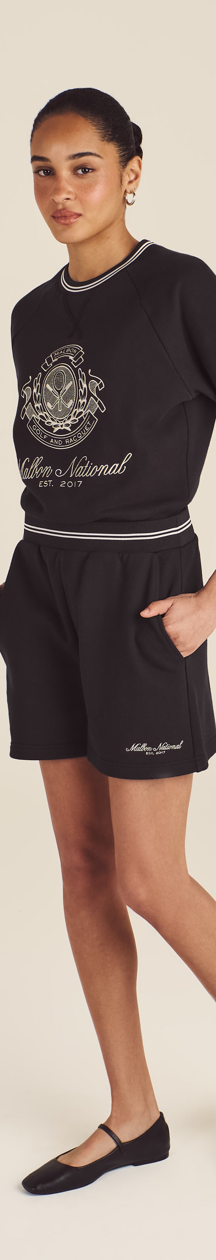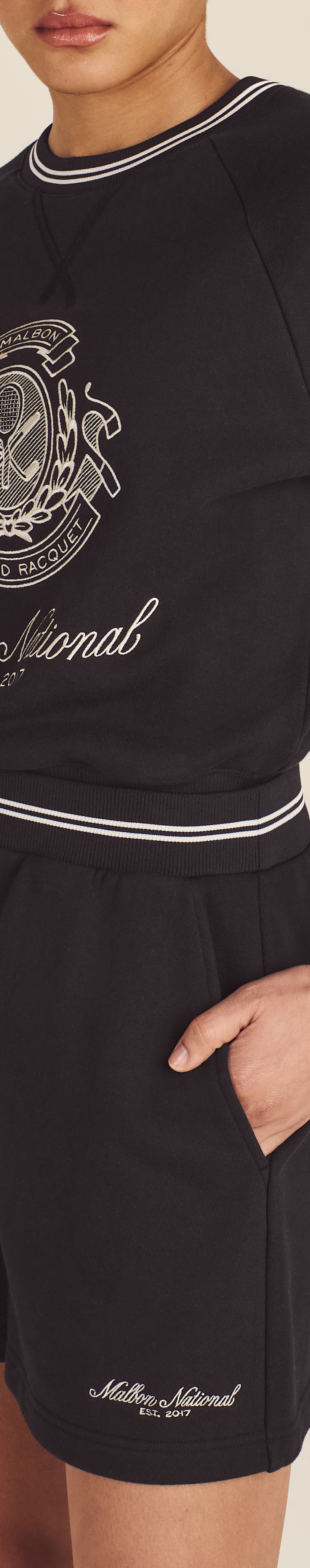 - Embroidered Malbon National logo on left leg