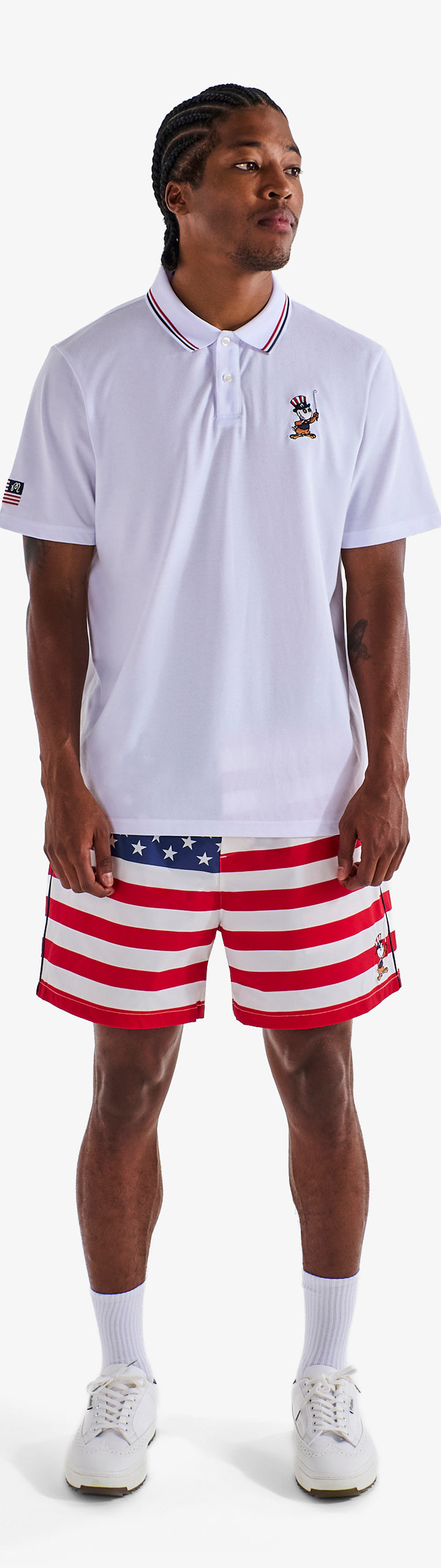 - Embroidered M script flag on right sleeve