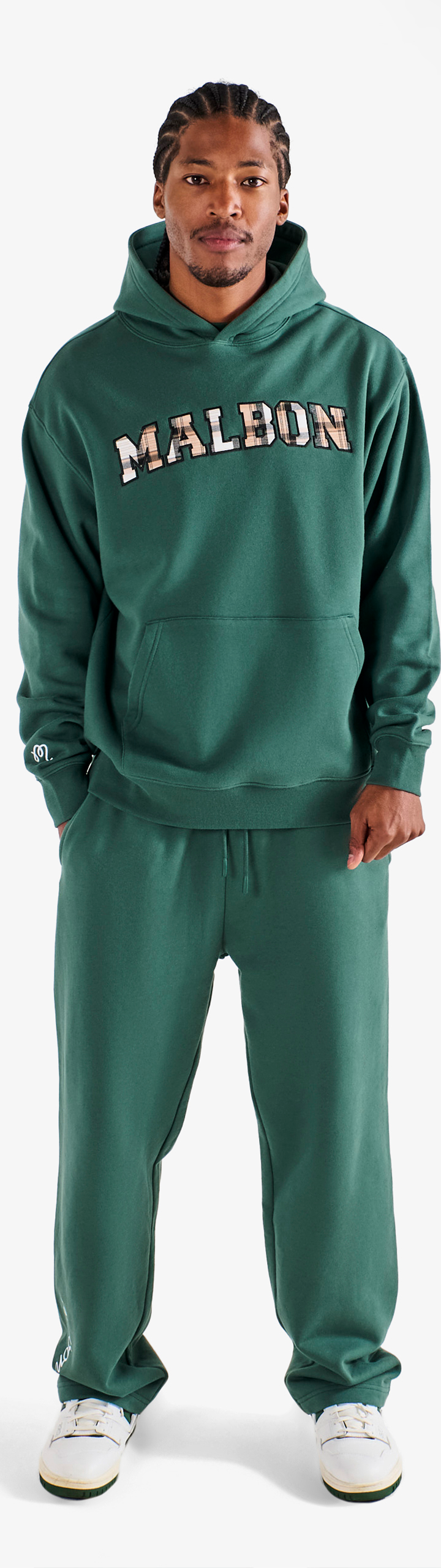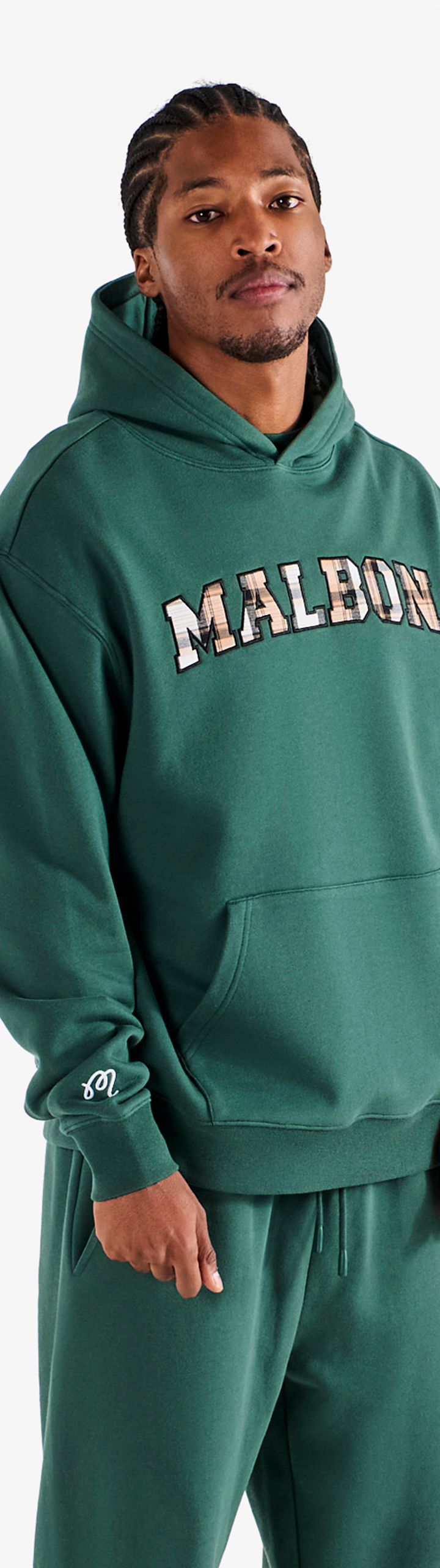 - Embroidered Malbon plaid appliqué across front