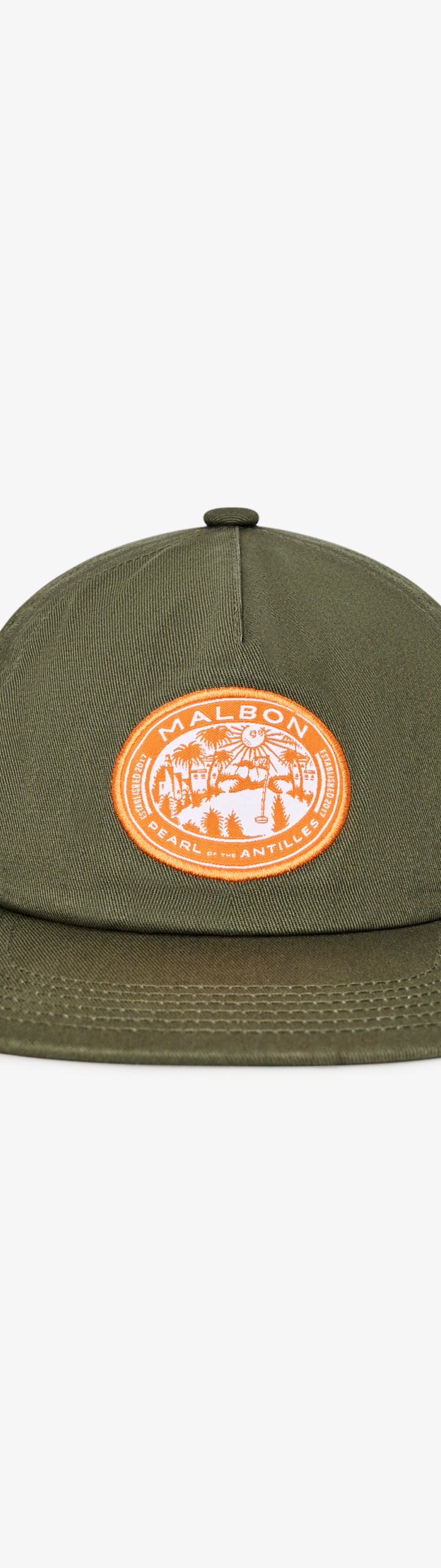 - Woven Pearl of the Antilles patch on front