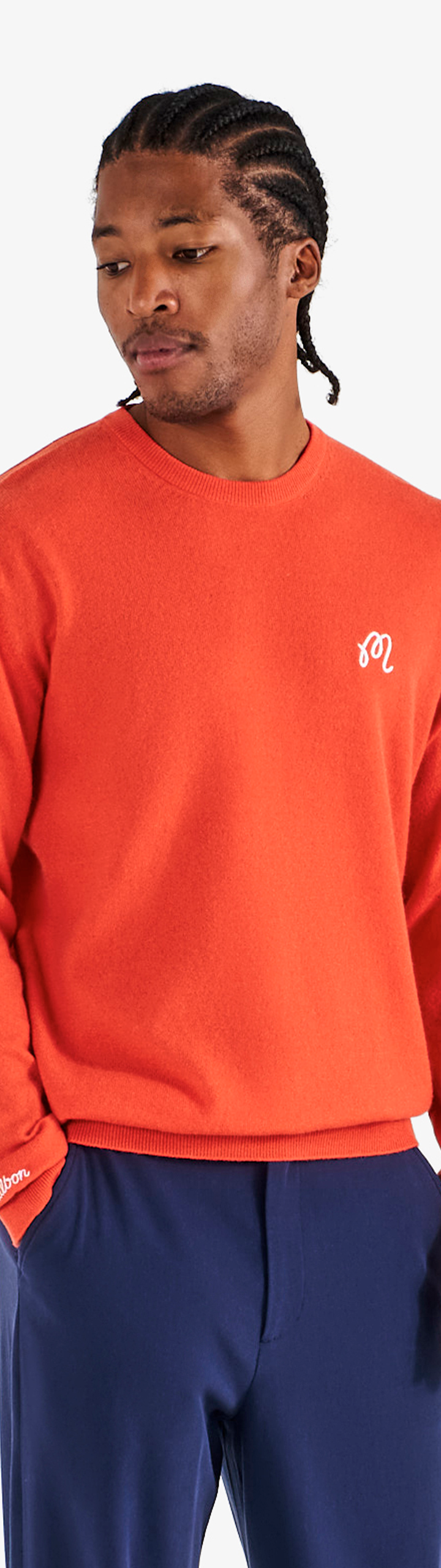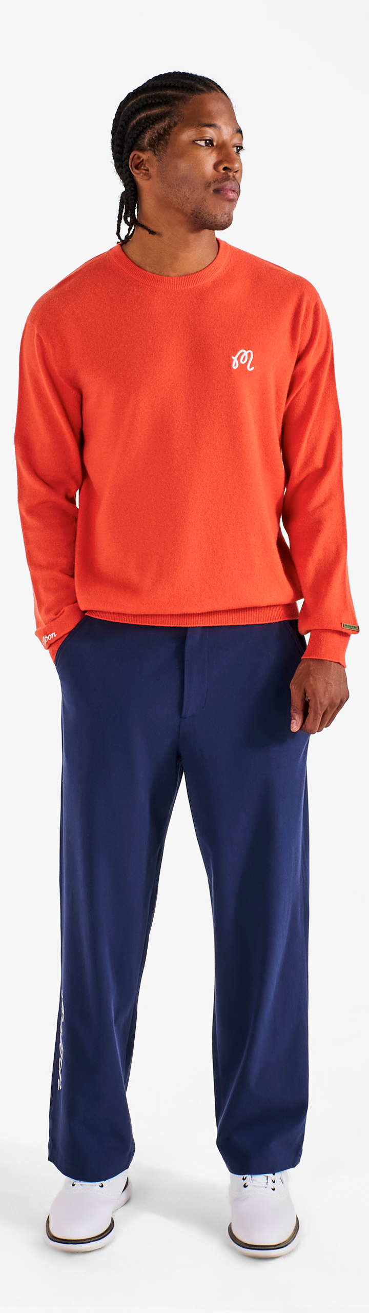 • Embroidered M script logo on left chest