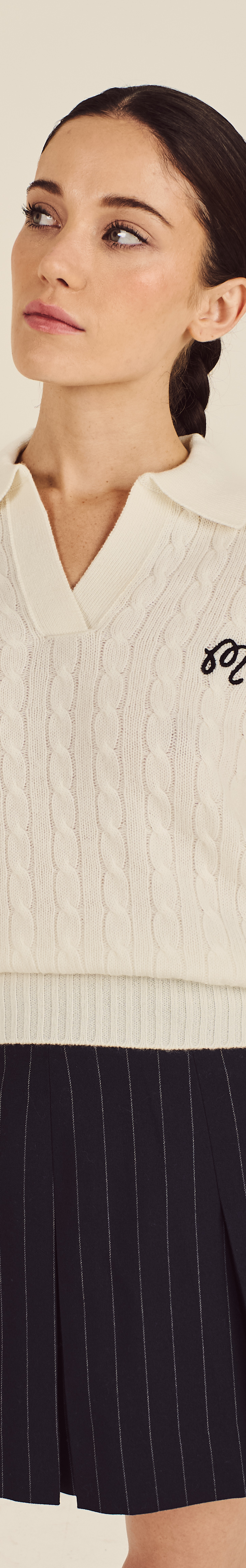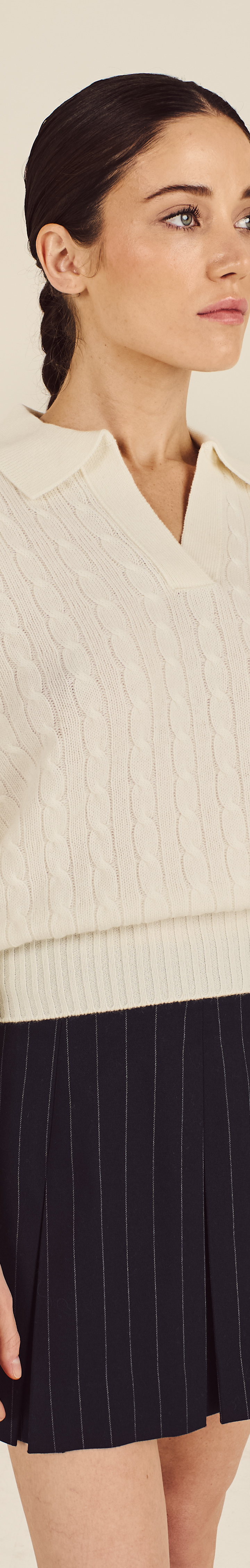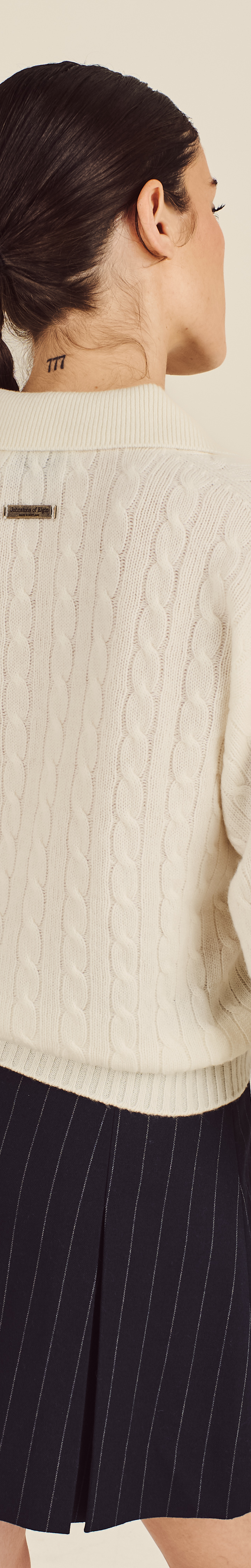 Our Johnstons Cropped Cableknit Sweater exemplifies premium Scottish knitwear. Woven from 100% cashmere with a johnny collar neckline and cableknit pattern throughout, it offers refined warmth in an effortless, contemporary silhouette.