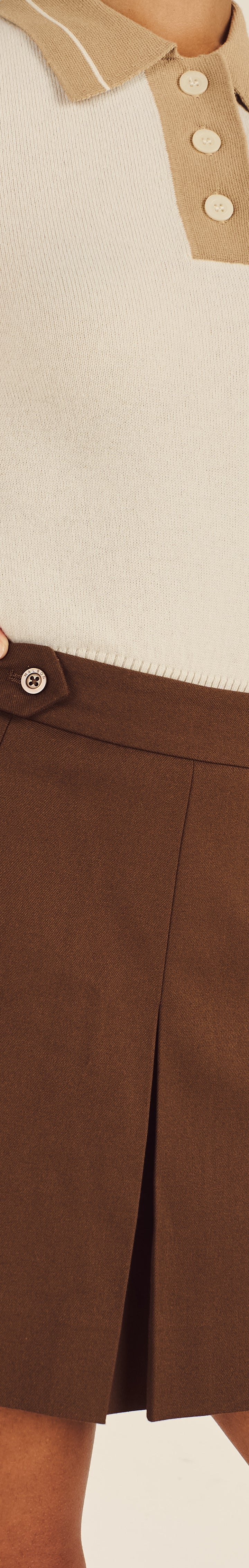 Featuring an A-line silhouette with box pleats throughout, engraved buttons at the waist, and built-in inner shorts for comfort and coverage, our Kiera Skirt is a polished and practical choice for any occasion.