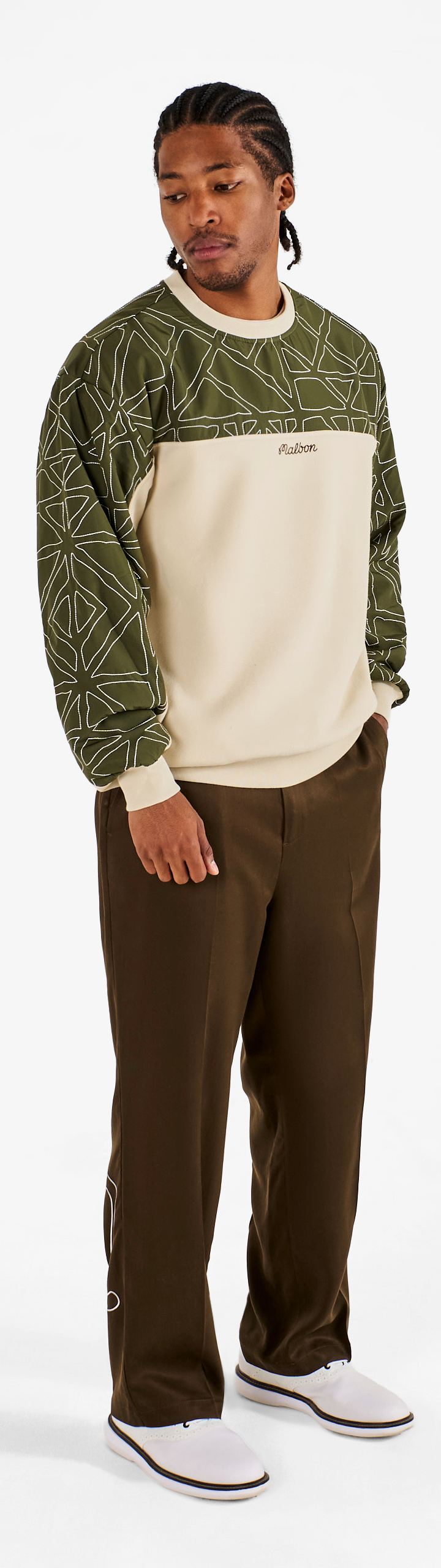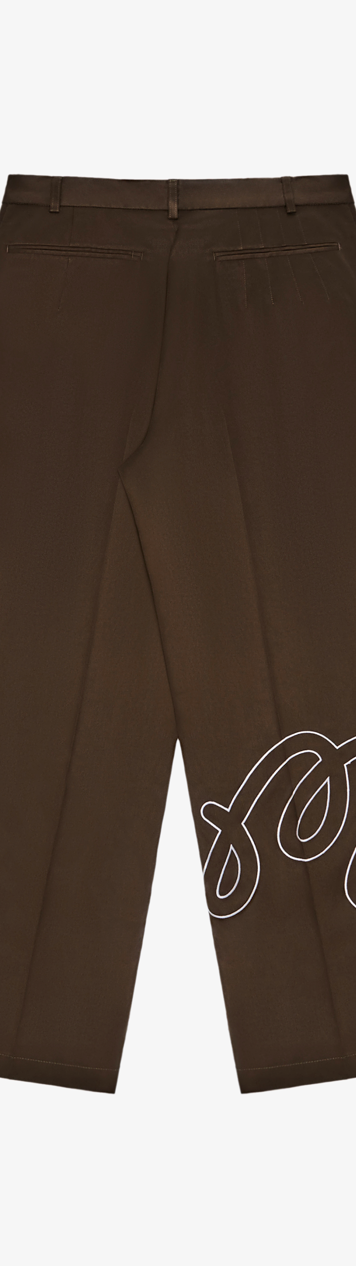 - Embroidered M script logo on right leg