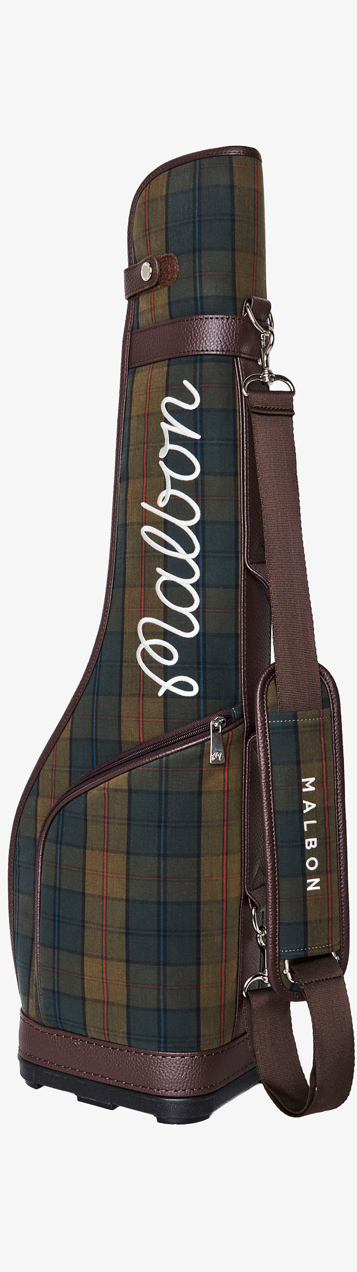 Our Lowlands Sunday Bag is the perfect companion for a lighter day on the greens. It's crafted in heritage plaid with multiple zippered compartments, a detachable and adjustable shoulder strap, and leather trim at key stress points. Malbon embroidery is woven throughout—understated craftsmanship that performs round after round.