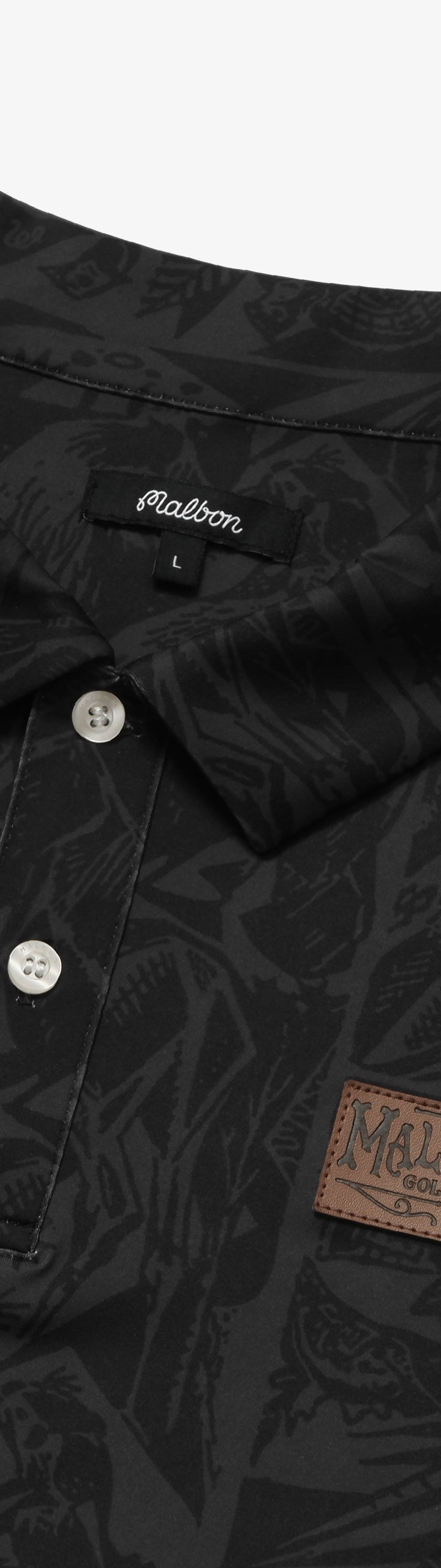 The knit rib collar adds a classic touch, while the leather Malbon Golf and Hunt Club patch detail showcases your appreciation for quality craftsmanship. A Malbon woven flag label on the left hip seam completes the look, adding a subtle yet distinctive flair.