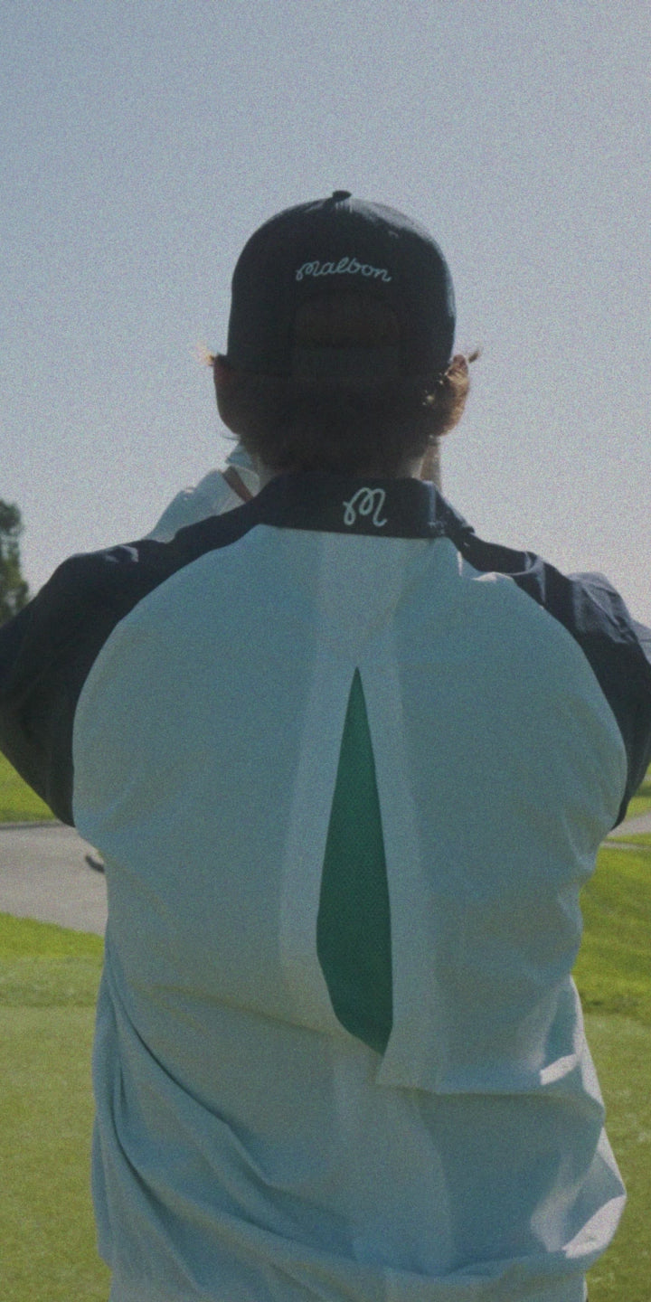 - Embroidered Malbon script logo on left chest