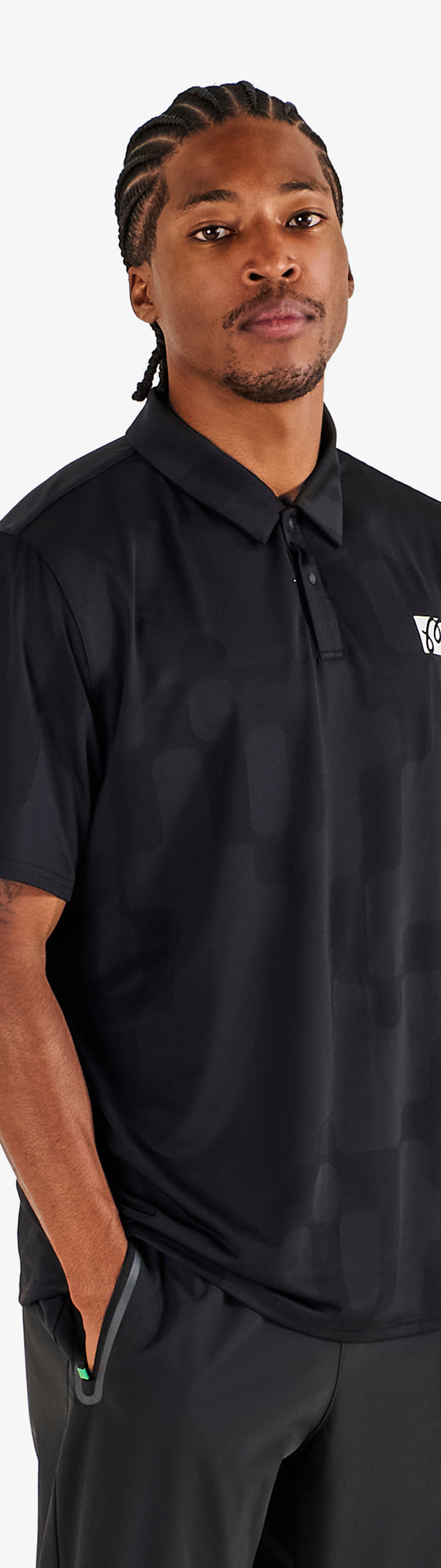 Part of our Performance line, this Mesh Paneled Polo is made from poly jacquard with an all-over print. Features include mesh panels for increased breathability, always a plus on the course.