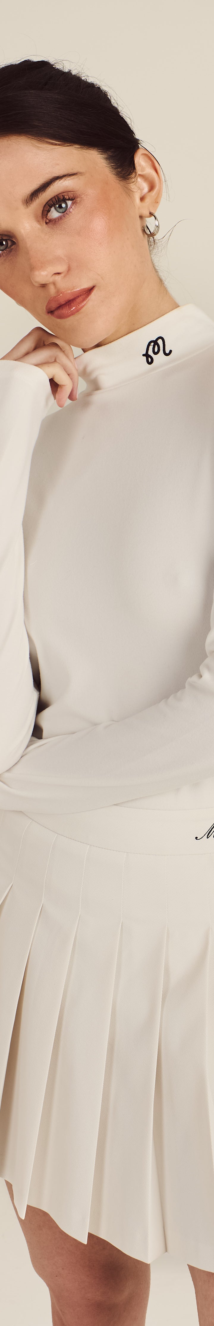 • Embroidered M script logo on collar