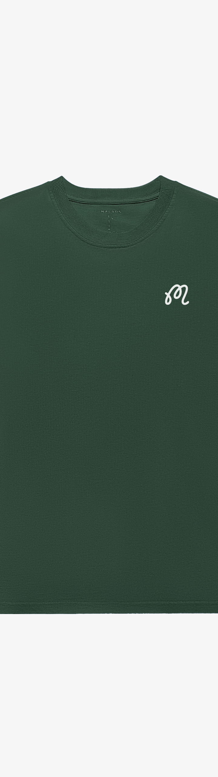 - Printed M script logo on left chest