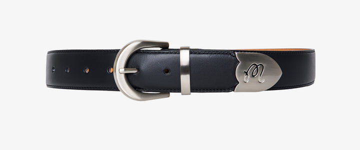 - Embroidered M script logo on collar