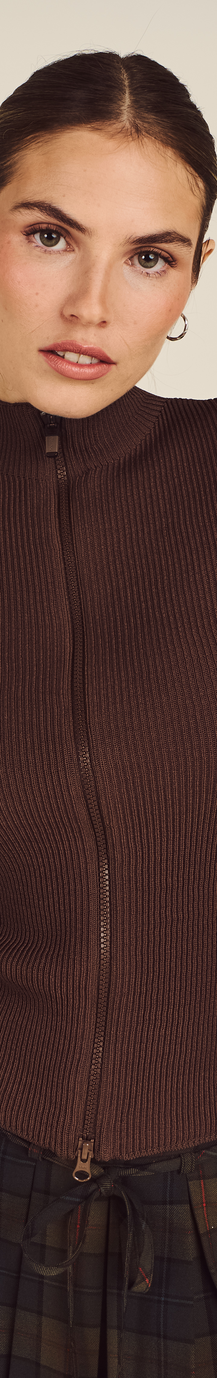 Our zipper cardigan is basically preparation for the upcoming season. Ribbed throughout and designed with a stand collar, it's easy to throw on over a tee and/or layer under heavier outerwear.